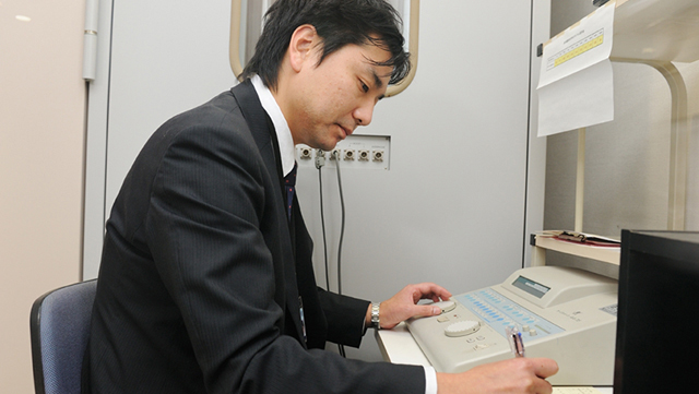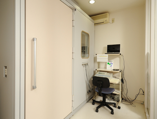![]() 防音室内での聴力測定 |