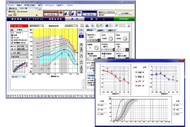![]() 聴力測定器と聴力検査用防音室(リオン製) |