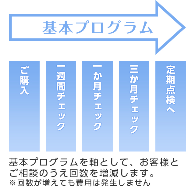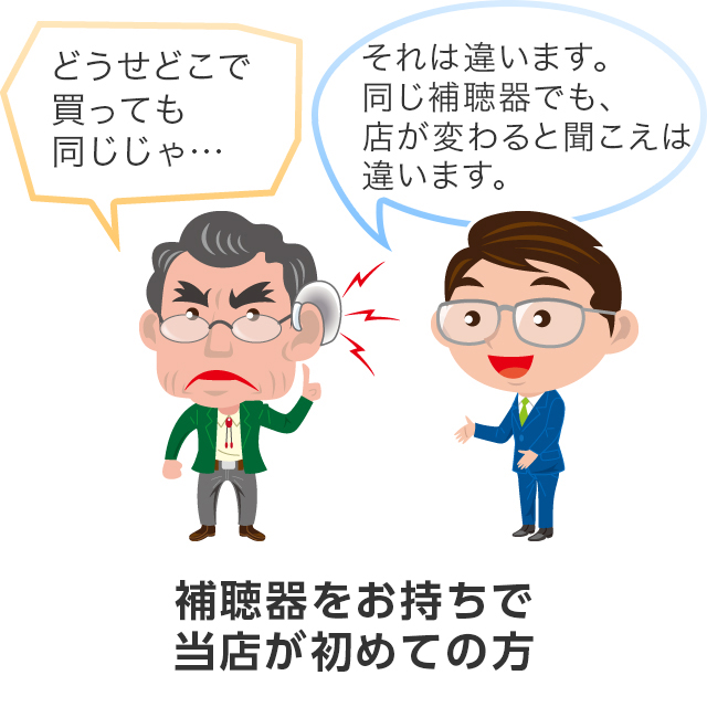 | ※難聴の原因によっては治療可能な場合もありますので、来店前に耳鼻咽喉科での受診をお勧めいたします。 ※ステップ⑦の補聴器ご購入まで費用は発生しません。 ※試聴器お貸出やご返却の際に費用を請求することもございません。 |