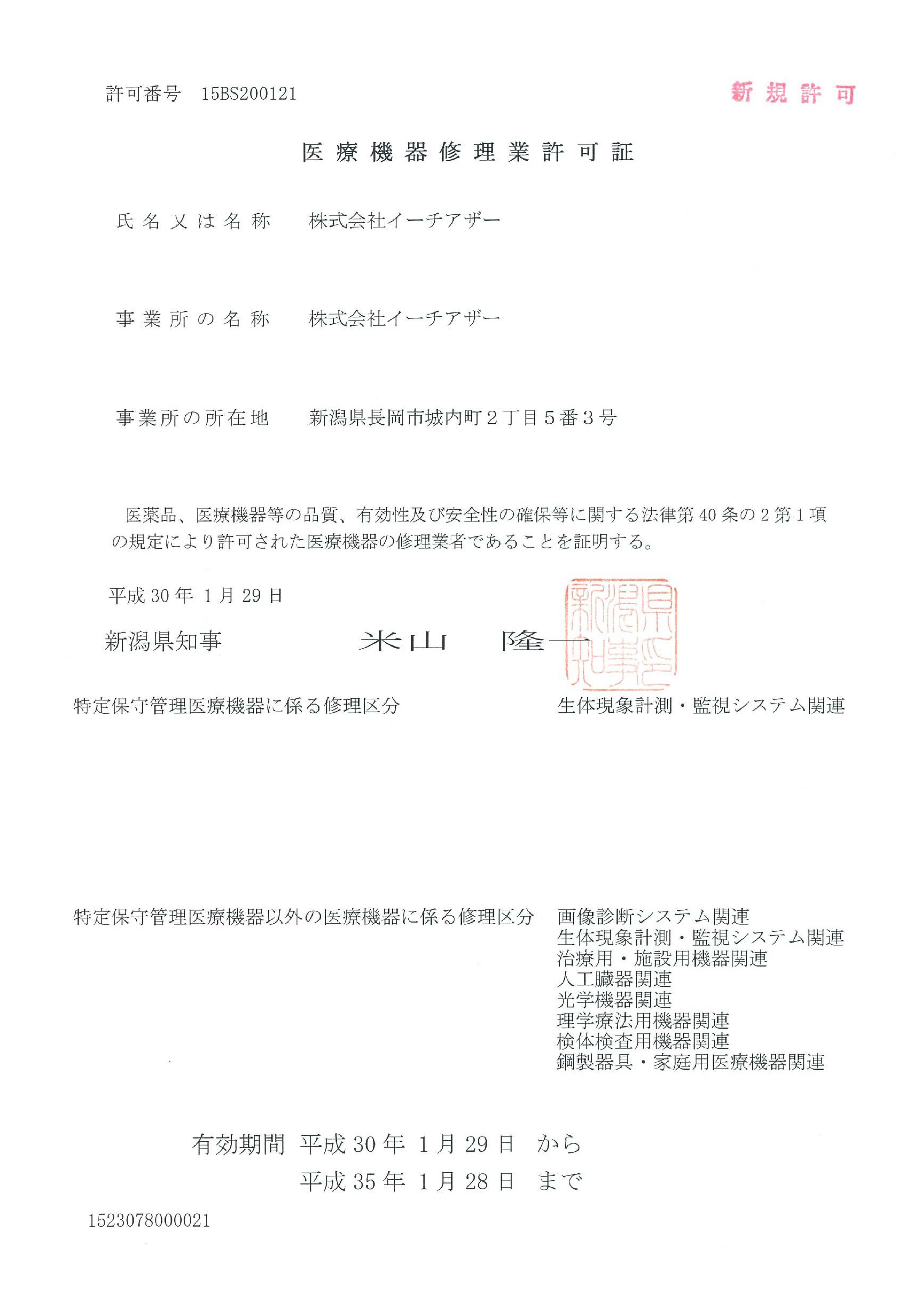 株式会社 イーチアザーは医療機器修理業の許可を受けました!