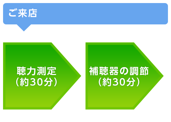 5 再調整(無料)ご相談の内容に応じて補聴器の音を再度調整致します。また、状況に応じて、聴力測定をさせて頂くこともあります。